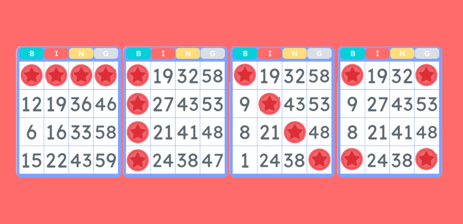Double line: Similarly, if you manage to mark all the numbers in two of the three rows on a card, "DOUBLE LINE!" will automatically be called.
