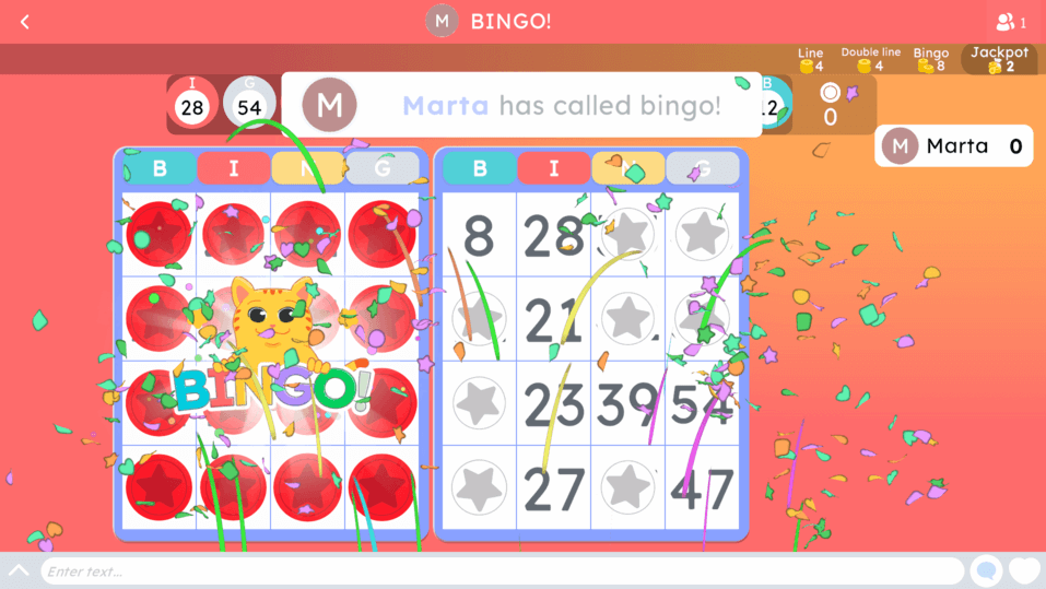 Bingo: The ultimate goal is to cover all the numbers on a card. When you achieve this, the game will call "BINGO!". At that moment, the game will automatically call "BINGO!", proclaiming your victory.