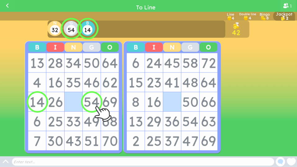 Double line: Similarly, if you manage to mark all the numbers in two lines, "DOºUBLE LINE!" will automatically be called.