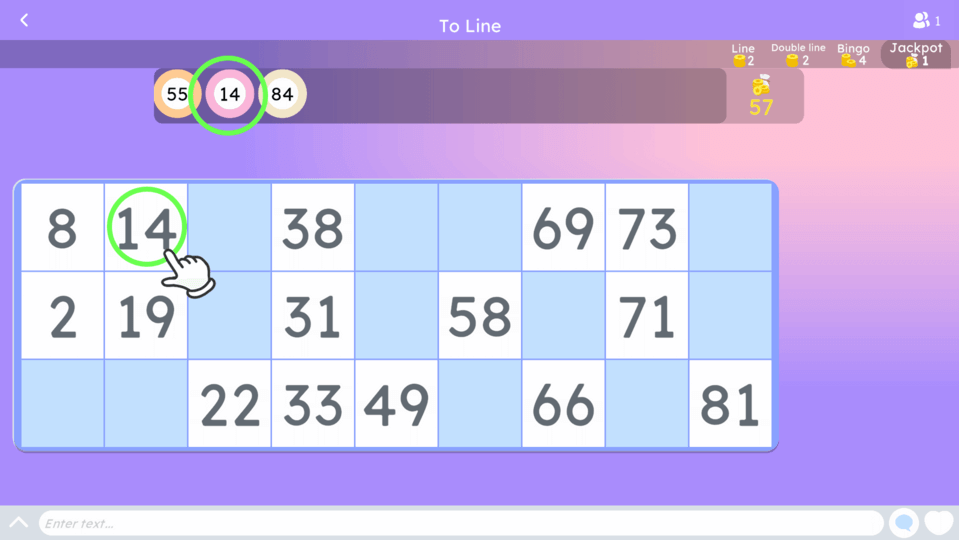 Line: When you mark all the numbers in a row on any of your cards, the game will automatically call "LINE!". This means you have achieved the first major success in the game.