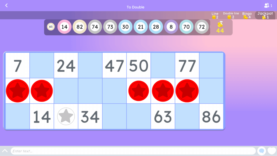 Double line: Similarly, if you manage to mark all the numbers in two lines, "DOUBLE LINE!" will automatically be called.