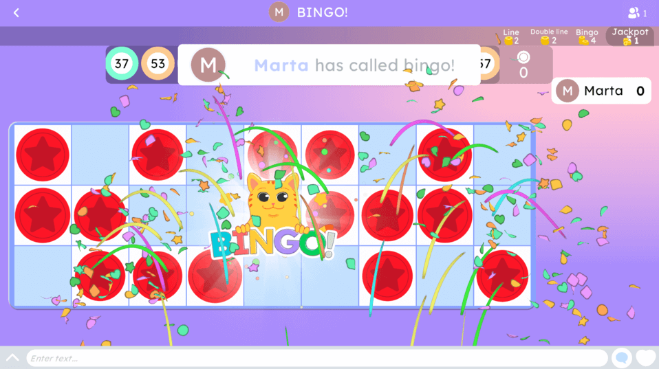 The jackpot: For those looking for a little more excitement, there is a jackpot. This special prize is won if you shout "Bingo" before 60 numbers are called.