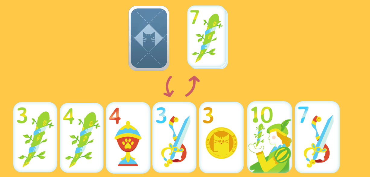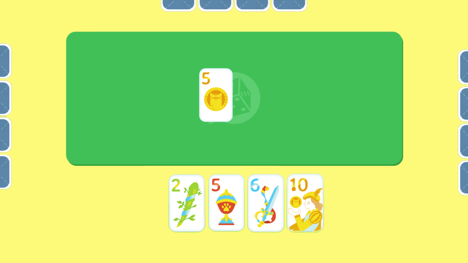 Starting the game: The game always starts with a special moment. The player who has the 5 of golds has the honor of starting by playing this card on the table. This marks the beginning of the action and sets the tone for the competition to come.