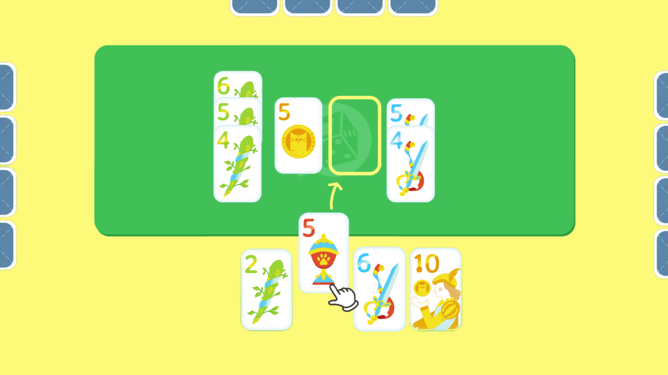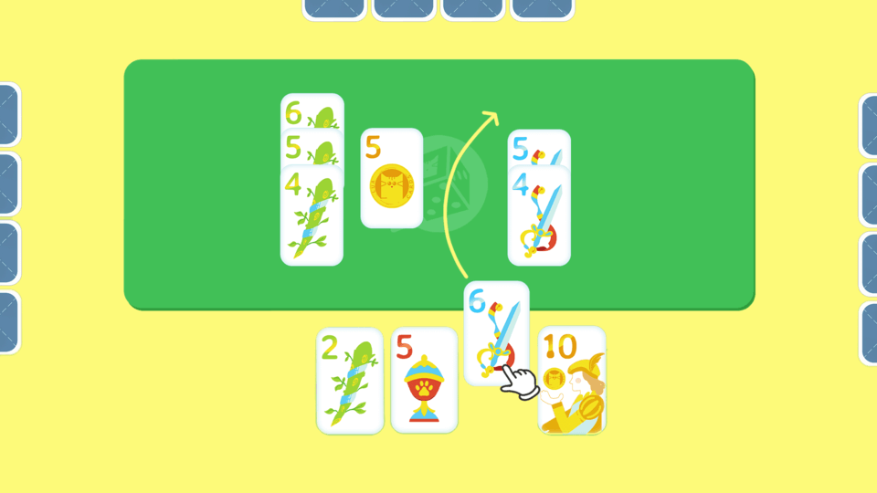 Start a new sequence: If you find yourself in a situation where you cannot or prefer not to continue the current sequence, you have the option to start a new one. This is done by placing another 5 - this time of cups, swords, or clubs - on the table. This action can radically change the course of the game, with new opportunities and challenges.