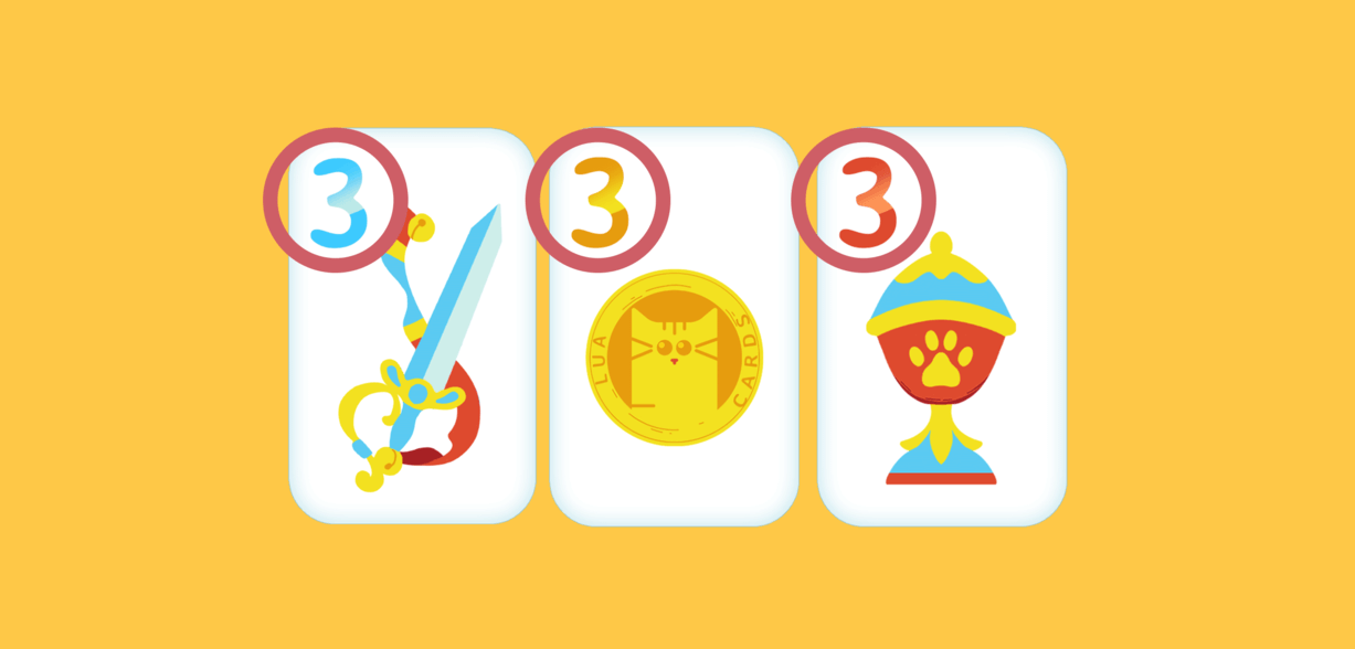 Preparation: The game starts with a table of cards face down. Each card shows one of the different Lua Chat kittens. There are pairs of identical cards, and the goal is to find and match all the pairs.