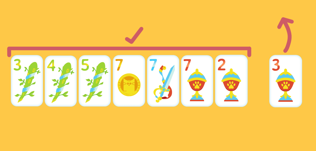 Closing the game: A player can declare the end of the game if they manage to form valid groups with all their cards, after all players have had at least one turn. You can also close if the player has six linked cards in valid groups and the remaining card has a value of 1, 2, or 3. To close, it is necessary to discard a card face down on the table.