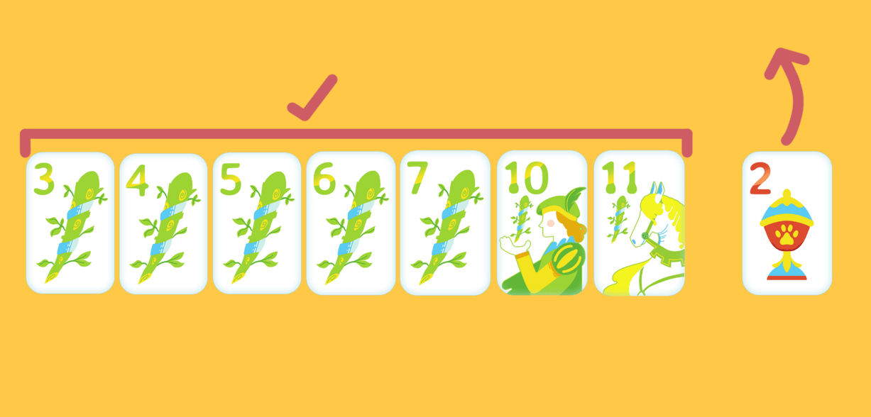 Continue the sequence: When it is your turn, you will have the opportunity to continue the sequence that is already in play. You can choose to continue ascending (upwards) or descending (downwards) by adding a card that follows the sequence on the table. This moment requires strategy and planning, as the decision you make can affect the course of the game.